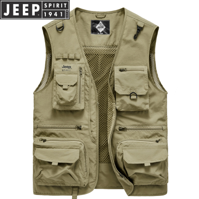 JEEP吉普马甲男士户外休闲轻薄摄影背心多口袋钓鱼网眼马夹外套