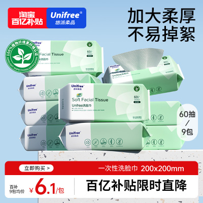 unifree洗脸巾一次性擦脸巾抽取式洁面巾宝宝家用加厚婴儿洗面巾
