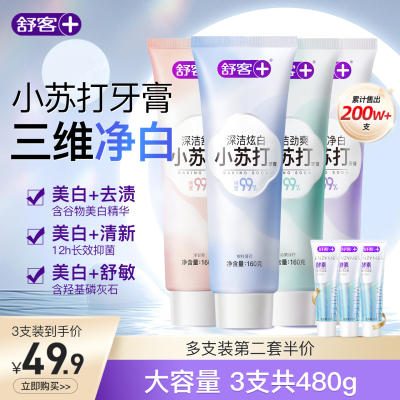 舒客小苏打牙膏美白去黄去牙渍酵素清新口气防蛀正品旗舰店非舒克