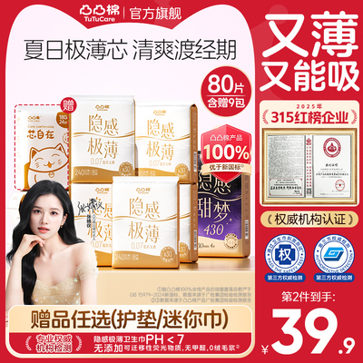 【赠品任选·双套有礼】凸凸棉极薄卫生巾超薄透气日夜整箱姨妈巾